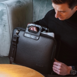 Ponadczasowa klasyka to styl, który zawsze pozostaje aktualny – doskonałym tego przykładem jest designerska torba na laptopa Bombata Allblack. Ten elegancki, model stanowi uniwersalny dodatek do każdej stylizacji, idealnie podkreślając charakter formalnego outfitu, a jednocześnie dodając klasy bardziej casualowym zestawieniom. Całość utrzymana została w głębokiej, matowej czerni, co nadaje torbie wyjątkowo wyrafinowany i profesjonalny wygląd.