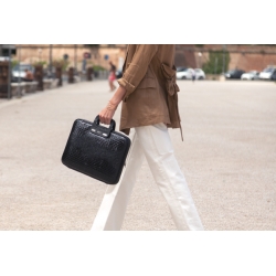 Torba na laptopa Bombata Shiny Cocco to propozycja stworzona z myślą o osobach, które cenią styl glamour połączony z codzienną funkcjonalnością. Jej wyjątkowy charakter podkreśla połyskująca powierzchnia oraz efektowna faktura inspirowana skórą krokodyla, dzięki którym torba staje się nie tylko praktycznym akcesorium, ale także designerskim dodatkiem do stylizacji. Doskonale sprawdzi się zarówno w eleganckich zestawach biurowych, jak i w bardziej casualowych outfitach. Model dostępny jest w pięciu modnych kolorach: czarnym, granatowym, czerwonym, fioletowym oraz taupe, co pozwala dopasować go do indywidualnego gustu.