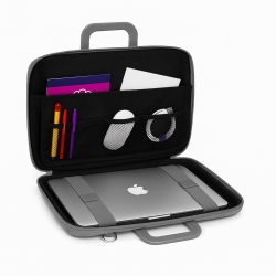 Nie tylko świetnie wygląda, ale też zachwyca praktycznością – pomieści laptopa o przekątnej do 15–16 cali, a także wszystkie niezbędne akcesoria: dokumenty, kable czy drobiazgi, które dzięki przemyślanemu wnętrzu pozostaną zawsze uporządkowane i łatwo dostępne.