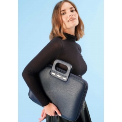 Modna torba na laptopa Bombata Wave skuteczne zabezpieczy Twój sprzęt podczas transportu. We wnętrzu znajdziesz dwie szelki, które bezpiecznie przytrzymają Twój laptop w torbie. Możesz trzymać ją za rączkę lub skorzystać z dołączonego paska, aby powiesić na ramieniu. Dodatkowym atutem jest fakt, iż została wykonana z winylu, który bardzo łatwo utrzymać w czystości!